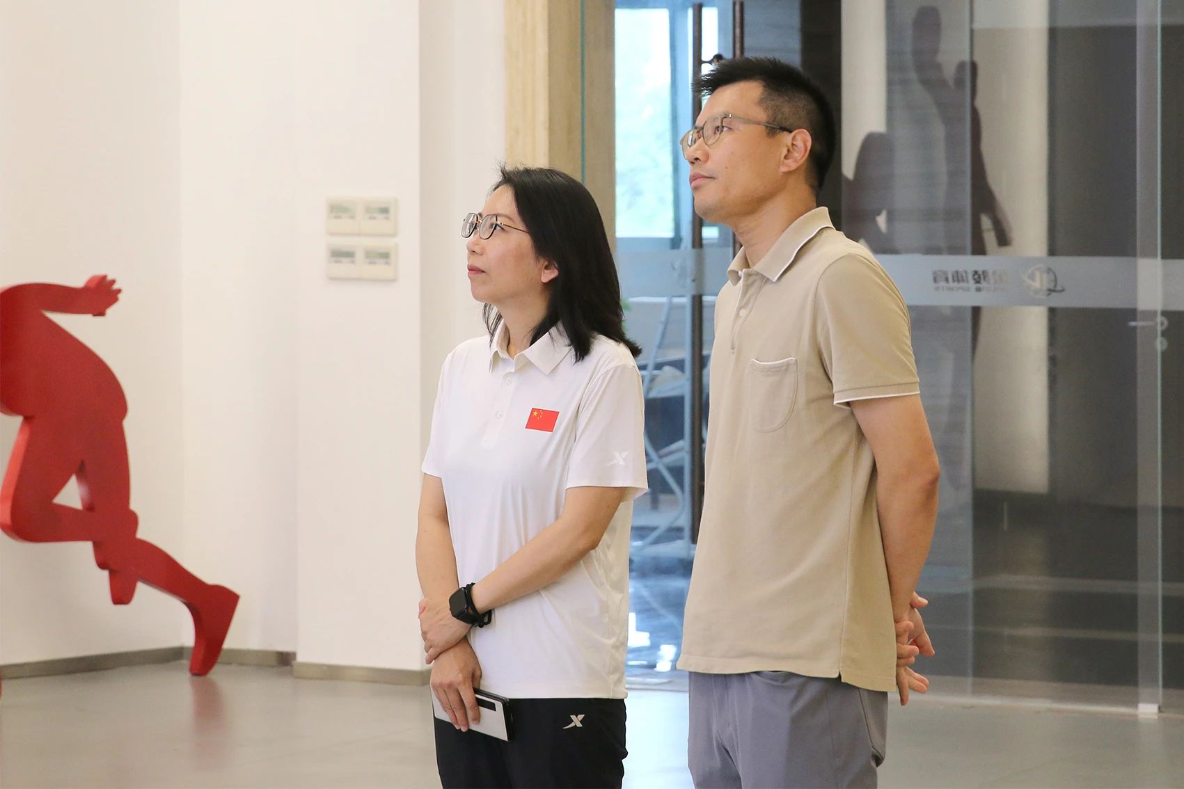 8月15日下午,参加中国田径协会第十届标准与认证委员会2024年年中工作会的领导和委员来到金陵体育参观交流,公司总经理李剑刚和副总经理赵育龙全程陪同。期间,一行人参观了公司的数字化展厅、实物展厅、智能化车间、检测中心和光电部田径器材展示区,总经理李剑刚介绍了公司近年来取得的工作成果和未来的发展方向。各位领导和委员对于金陵体育所做的工作给与了充分的肯定。